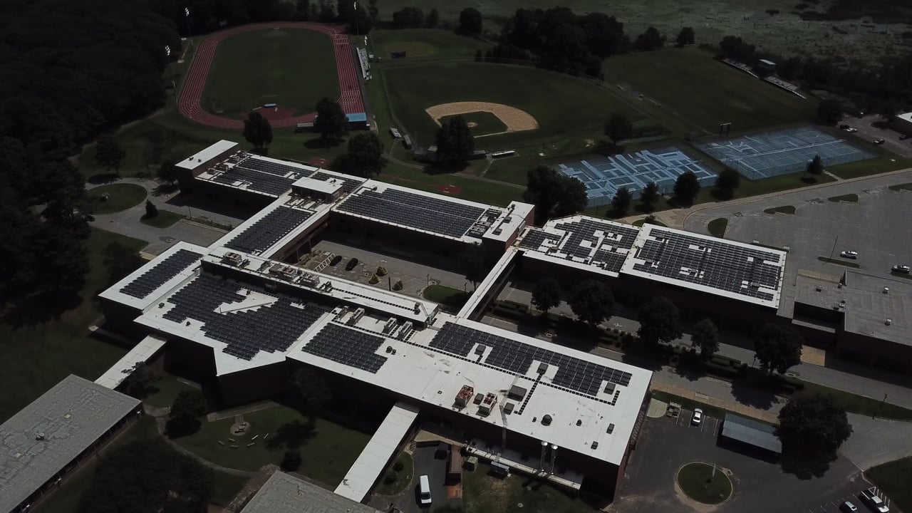 The photovoltaic panels generate approximately 37% of the power required by the facility. These are bifacial panels – which absorb both direct sunlight and sunlight reflected off the white membrane roof. This newer technology produces more power than traditional panels, while covering the same surface area.